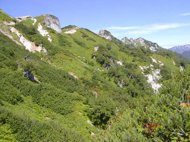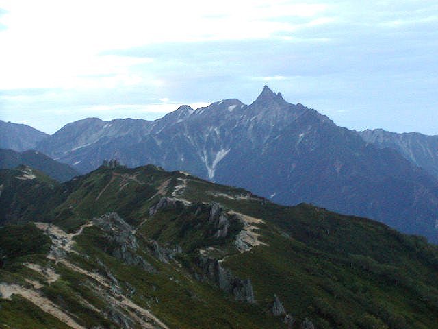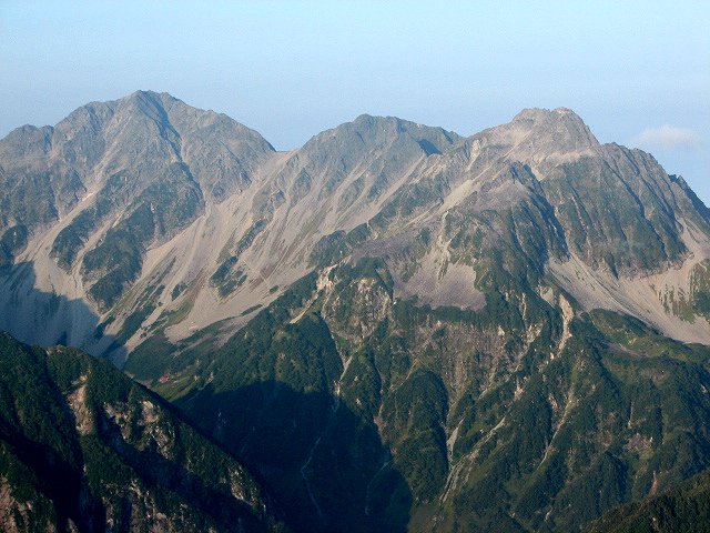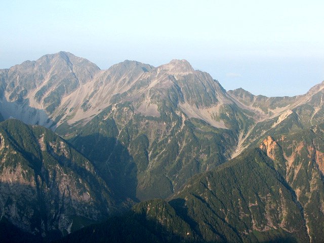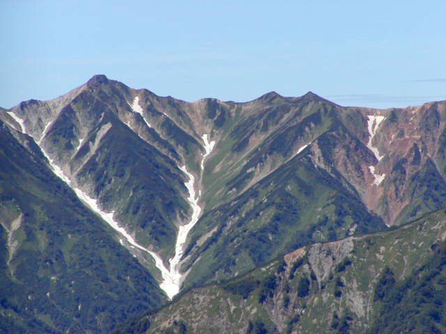 「手前に蓮華岳、中央に餓鬼岳・唐沢岳、