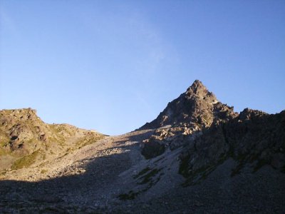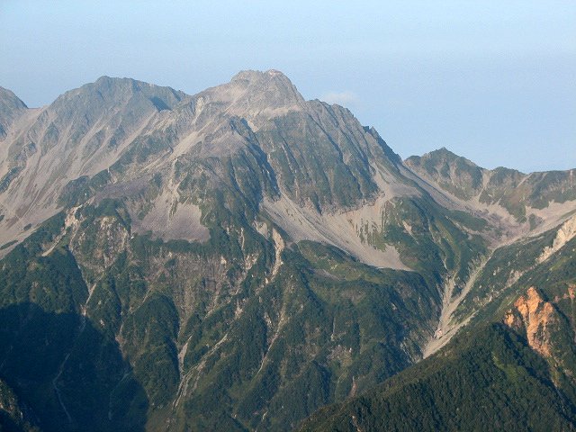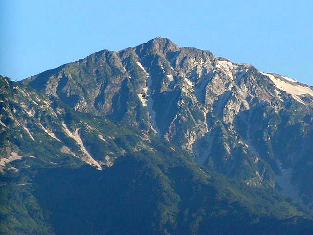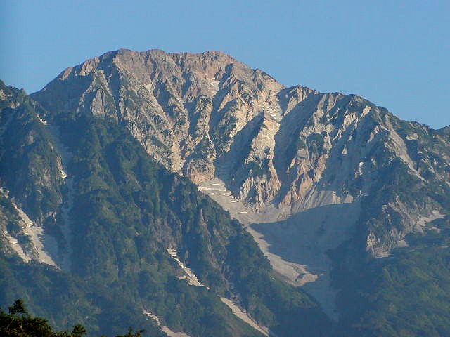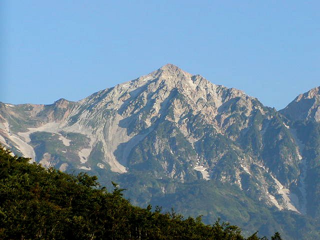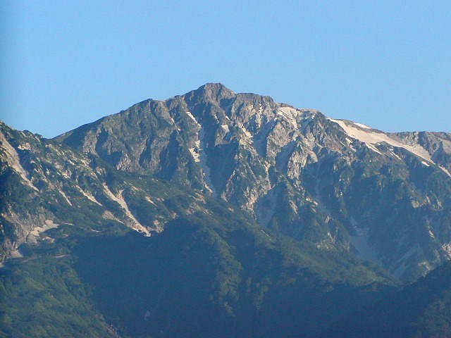 「夏の朝の白馬鑓ヶ岳」(黒菱林道にて)