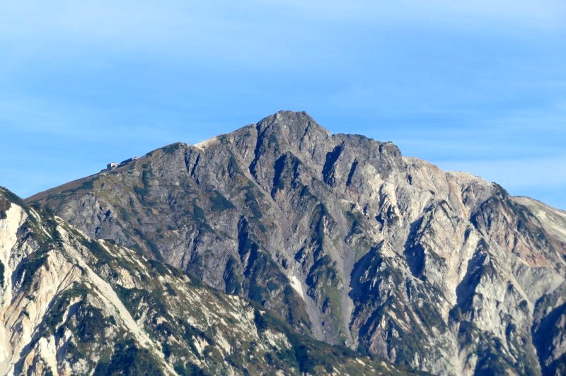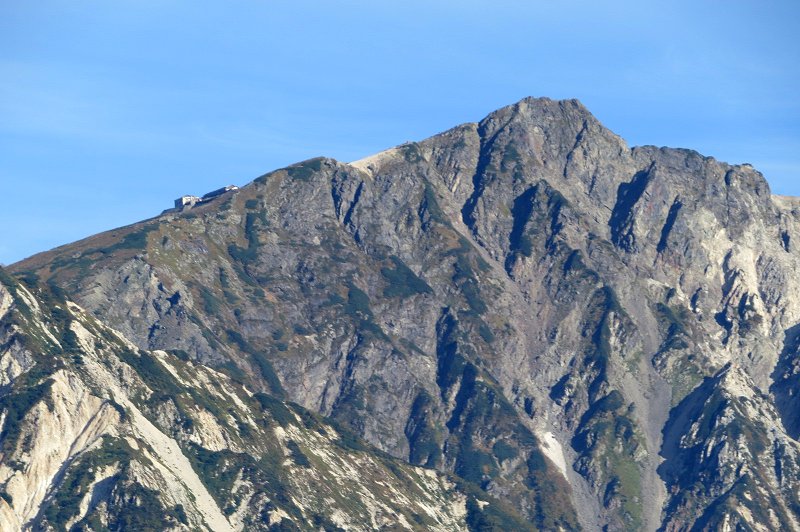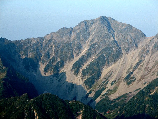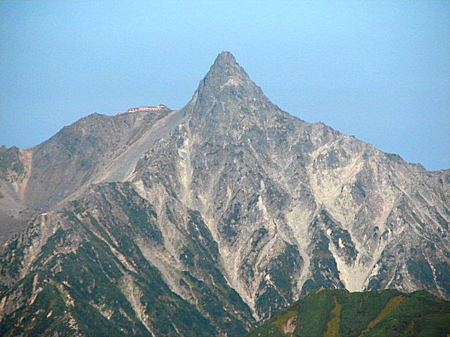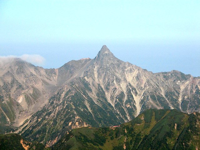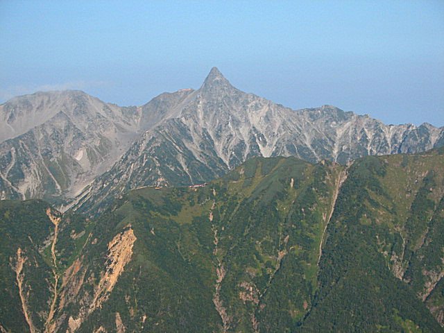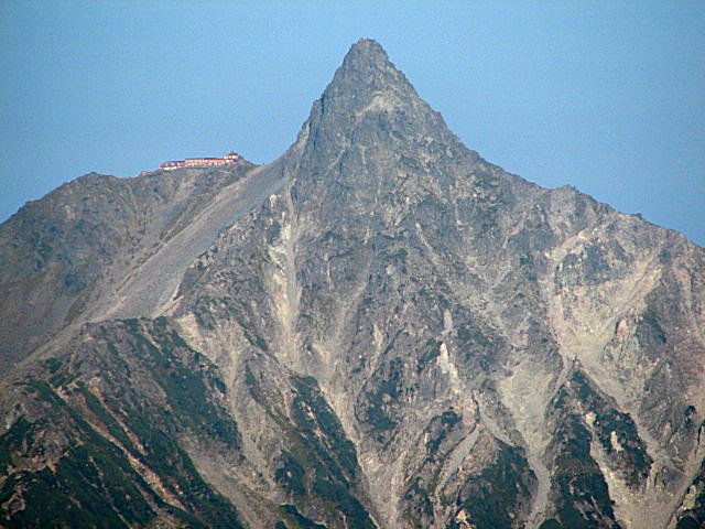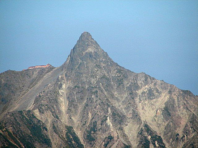 「槍ヶ岳の穂先と槍ヶ岳山荘」(常念岳にて)