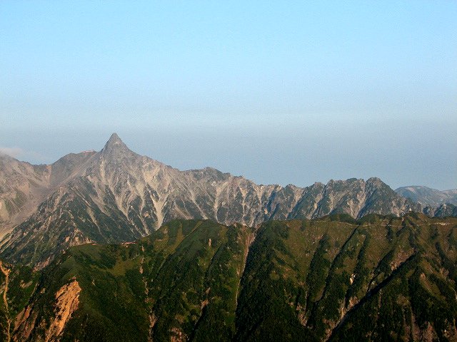 「槍ヶ岳・北鎌尾根・独標、手前は西岳・喜作新道」(常念岳にて)