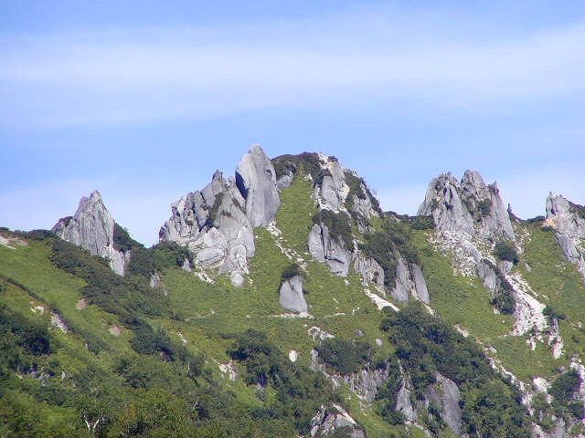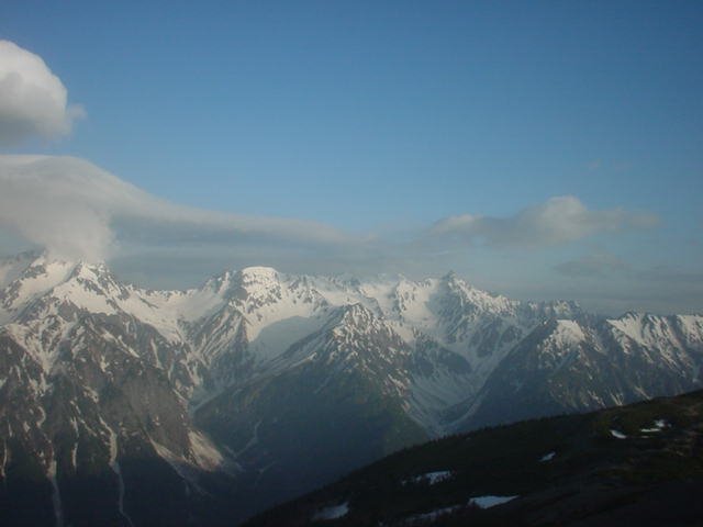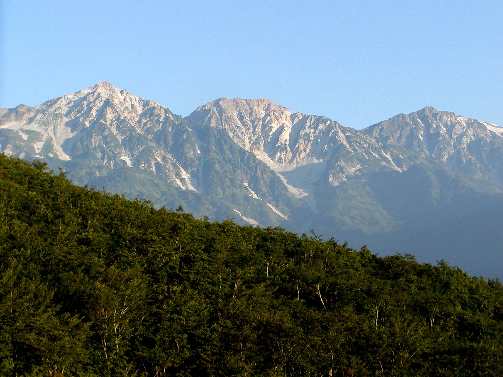 「夏の白馬鑓ヶ岳・杓子岳・白馬岳」(八方尾根・黒菱平にて)