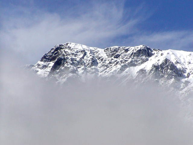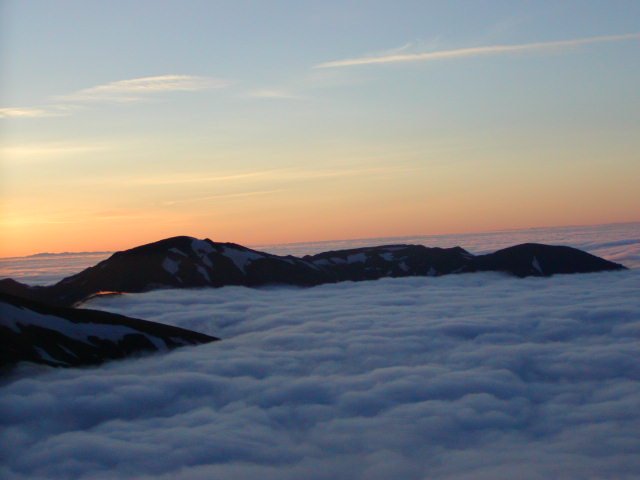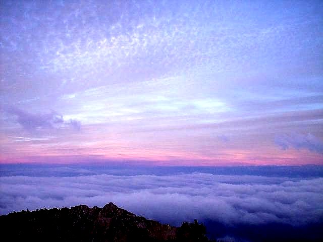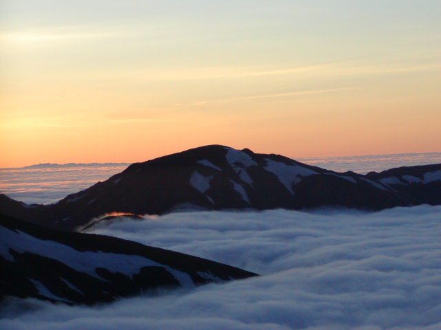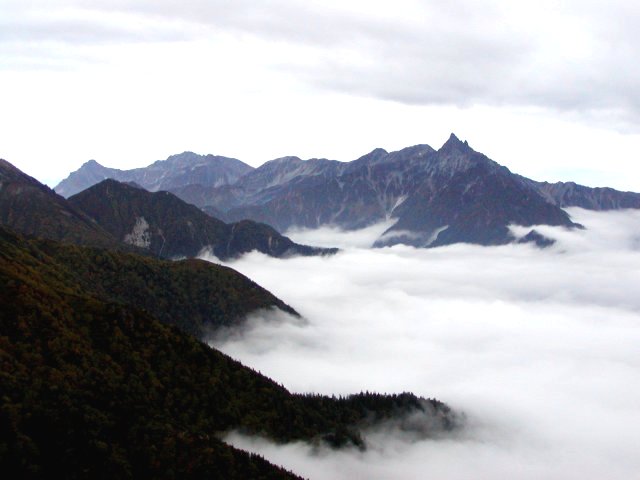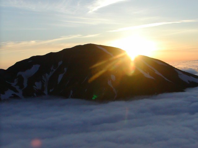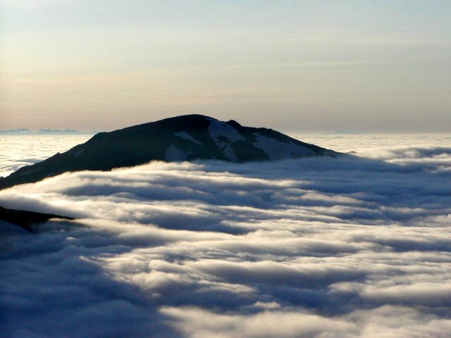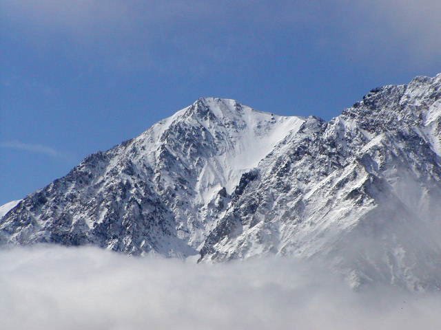 「雲海の上に冠雪した杓子岳」(栂池にて)