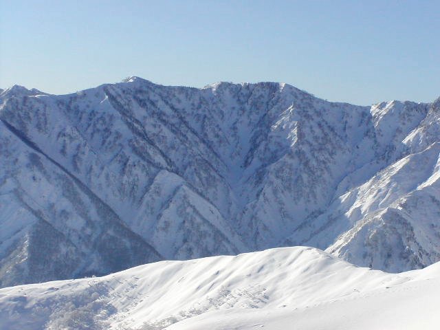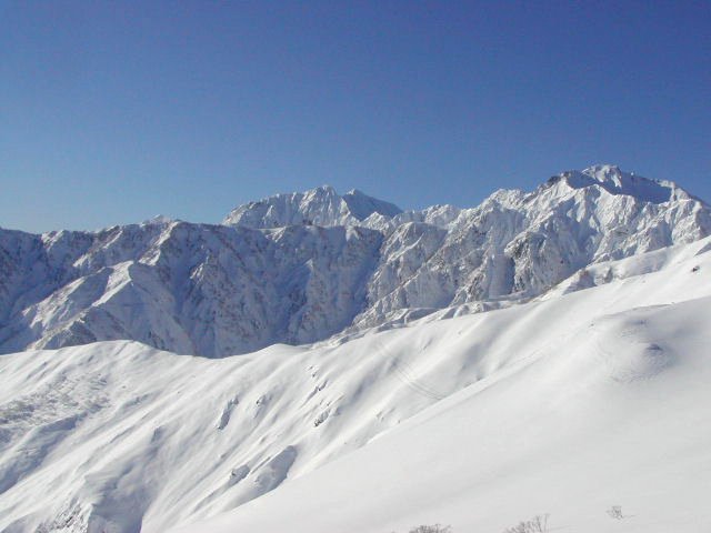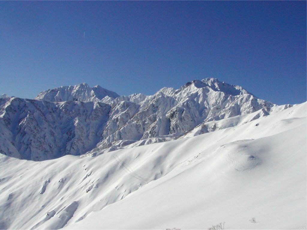 「雪の鹿島槍ヶ岳・遠見尾根・右端は西遠見山」(八方尾根にて)
