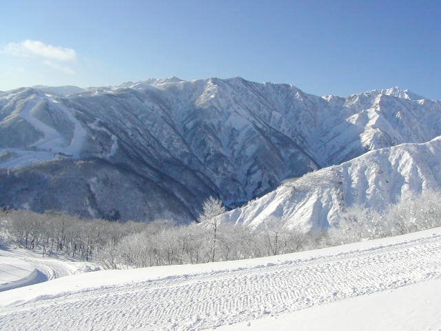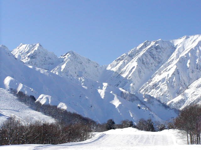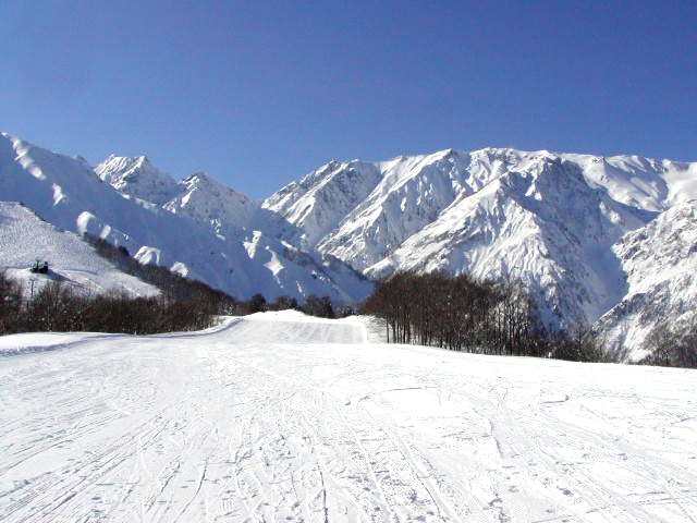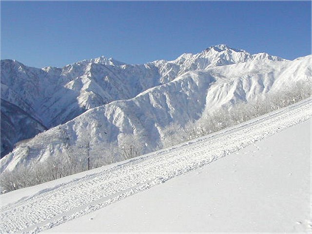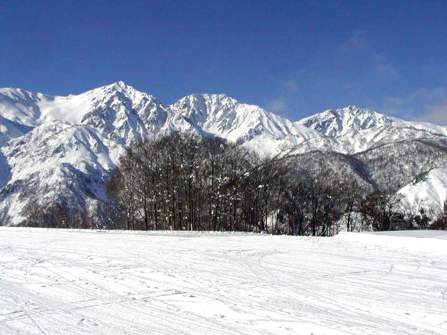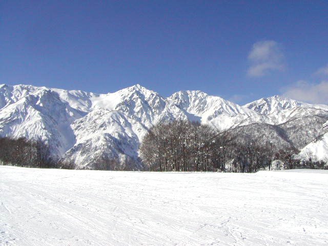 「雪の白馬三山と黒菱G」(八方尾根スキー場にて)