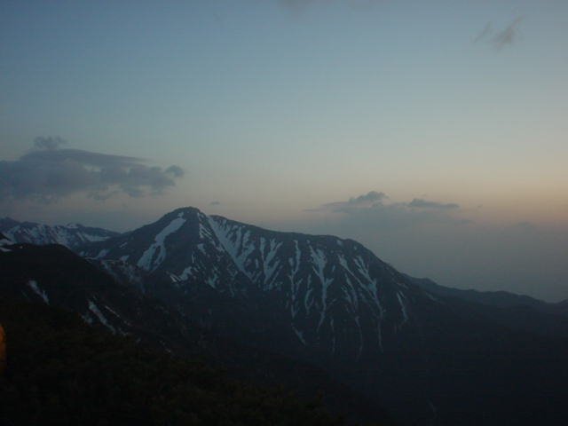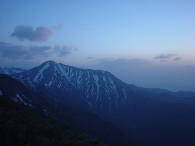 「夕焼けの朝日岳」(雷鳥坂にて)