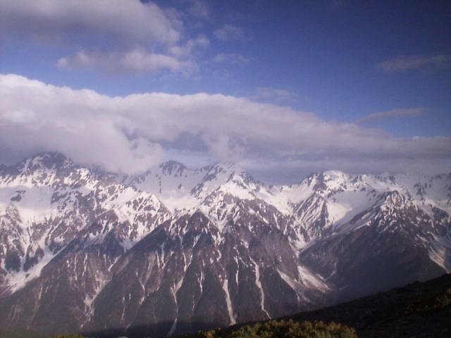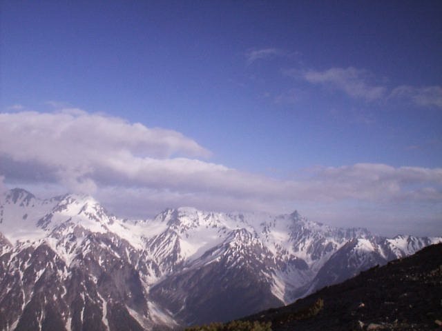 「残雪の槍・穂高連峰」(春の蝶ヶ岳にて)