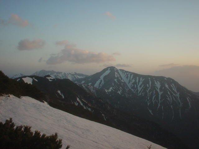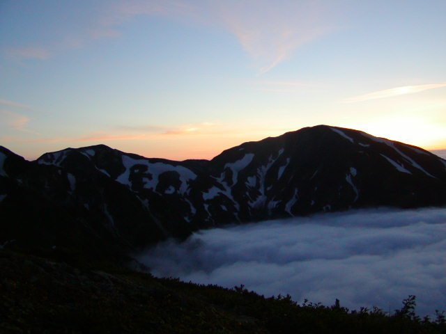 「夕焼けの雪倉岳・朝日岳」(雷鳥坂にて)