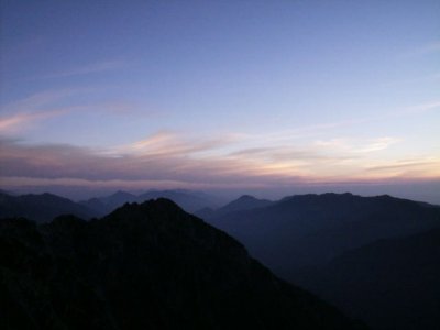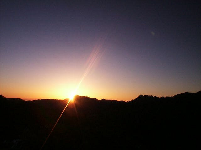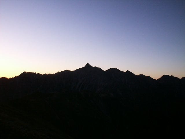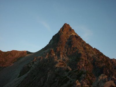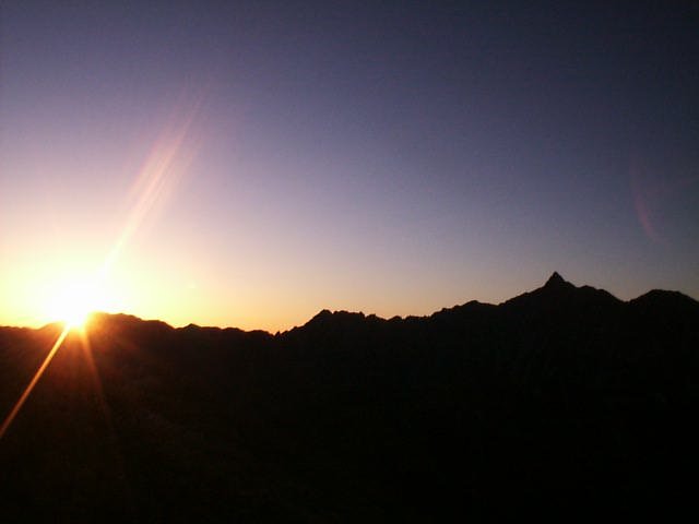 「夜明けの槍ヶ岳」(槍ヶ岳にて)