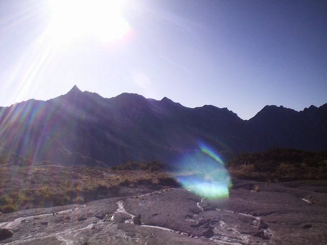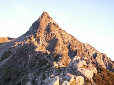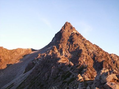 「朝日差す常念岳」(春の蝶ヶ岳にて)