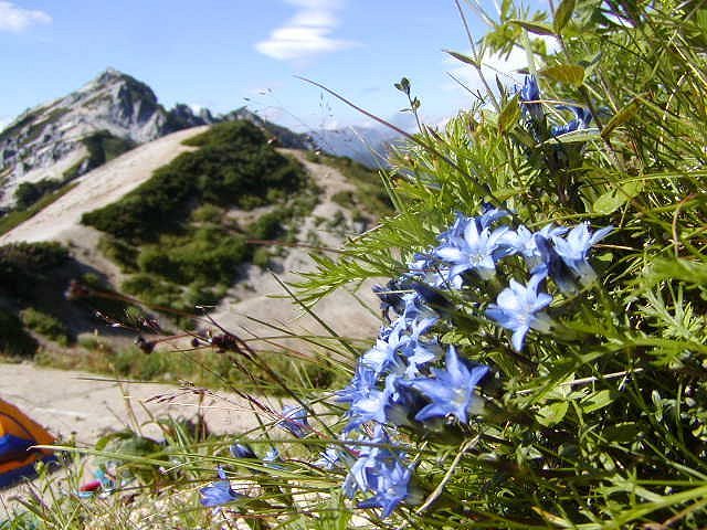 「トウヤクリンドウと槍ヶ岳」(常念岳にて)