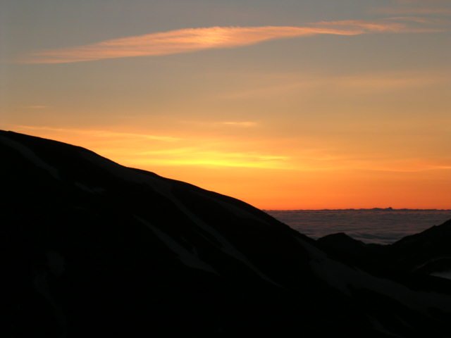 「夕焼けの雪倉岳」(雷鳥坂にて)