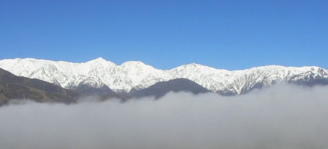 「雲海の上に冠雪した白馬岳〜馬ノ背」(栂池にて)