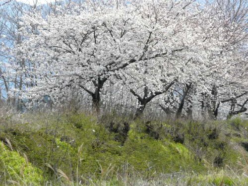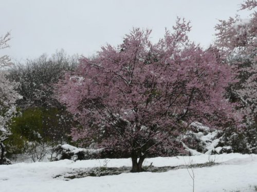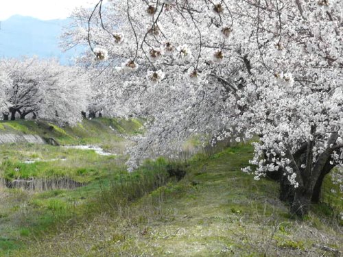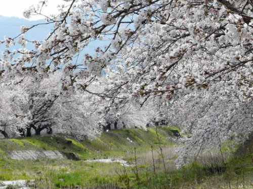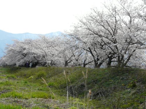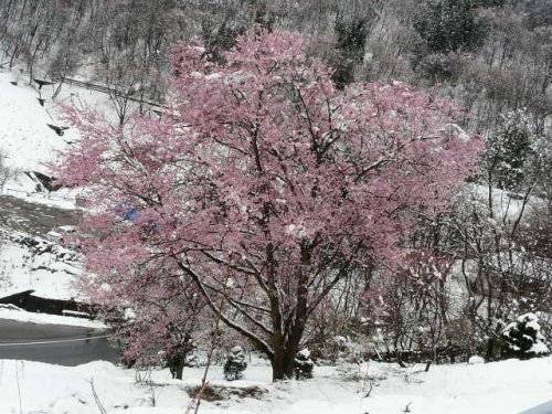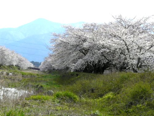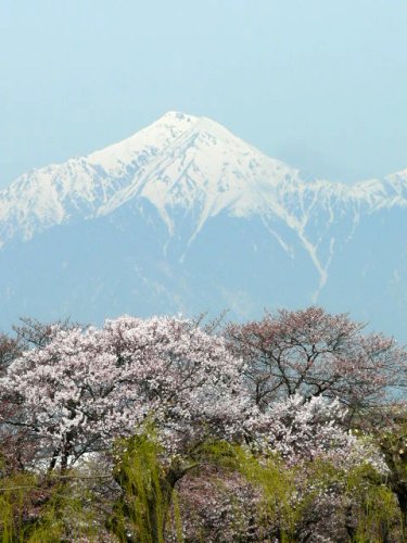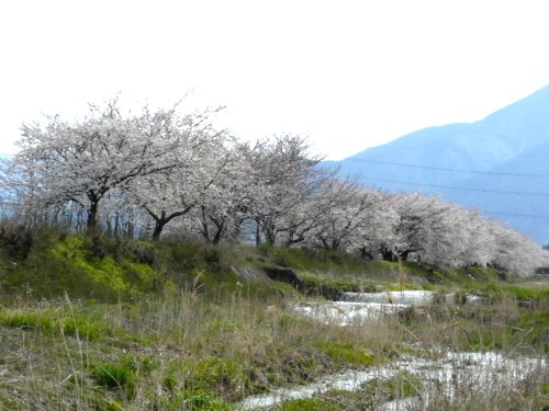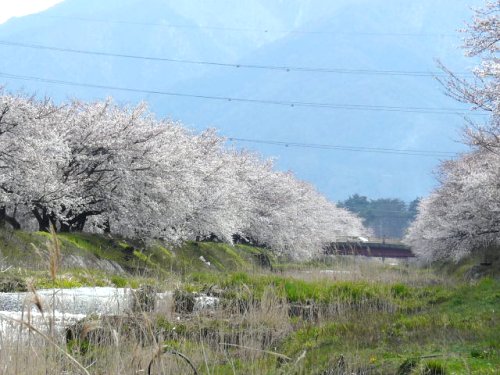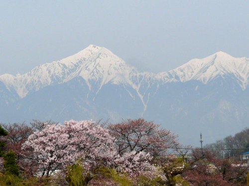 「春の雪と穂高川沿いの桜」(2010.04.17)
