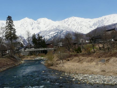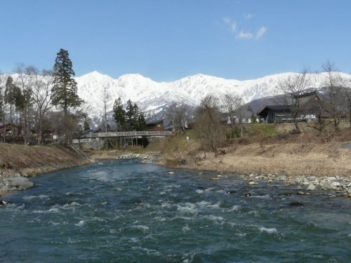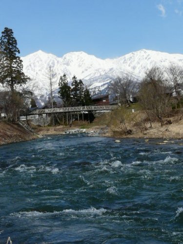 「白馬三山」(姫川大出の吊橋にて)(2010.04/下)