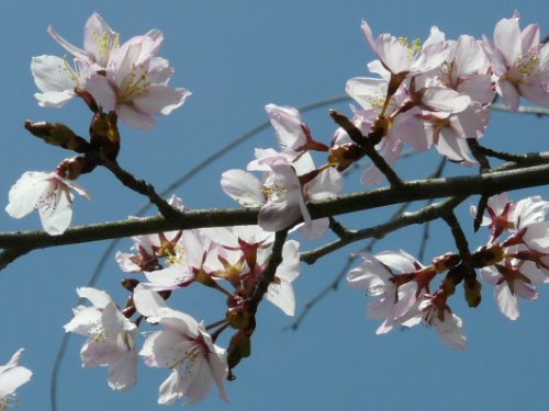 「松本城の枝垂れ桜」(松本城にて)(2010.04/上)