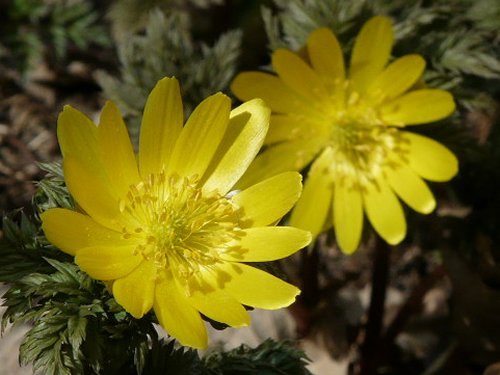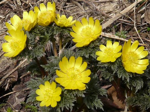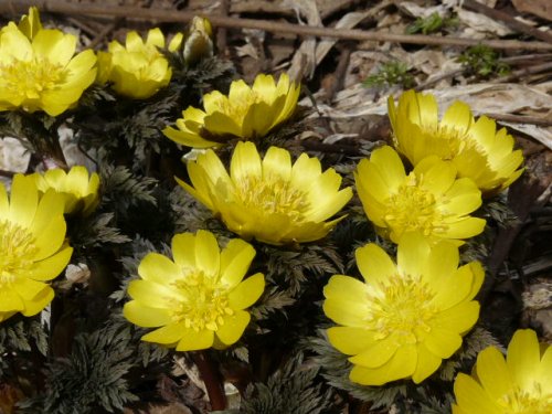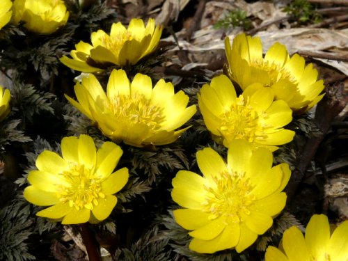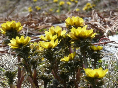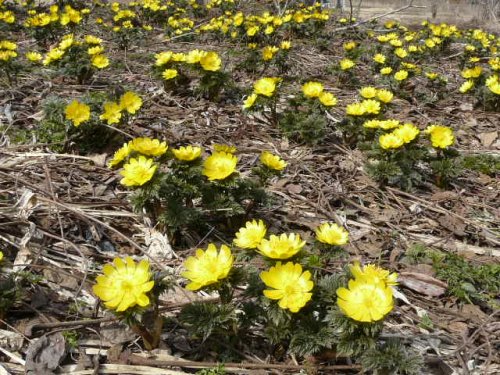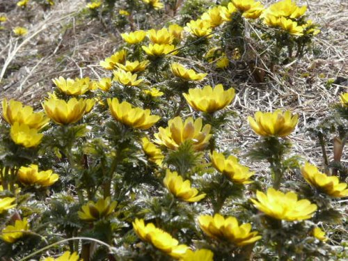 「福寿草の群生」(木崎湖海の口にて)(2010.04/中)