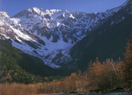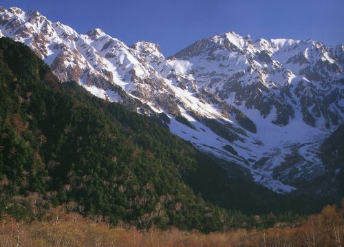 「早春の梓川と穂高連峰」(上高地)(原和明氏撮影)